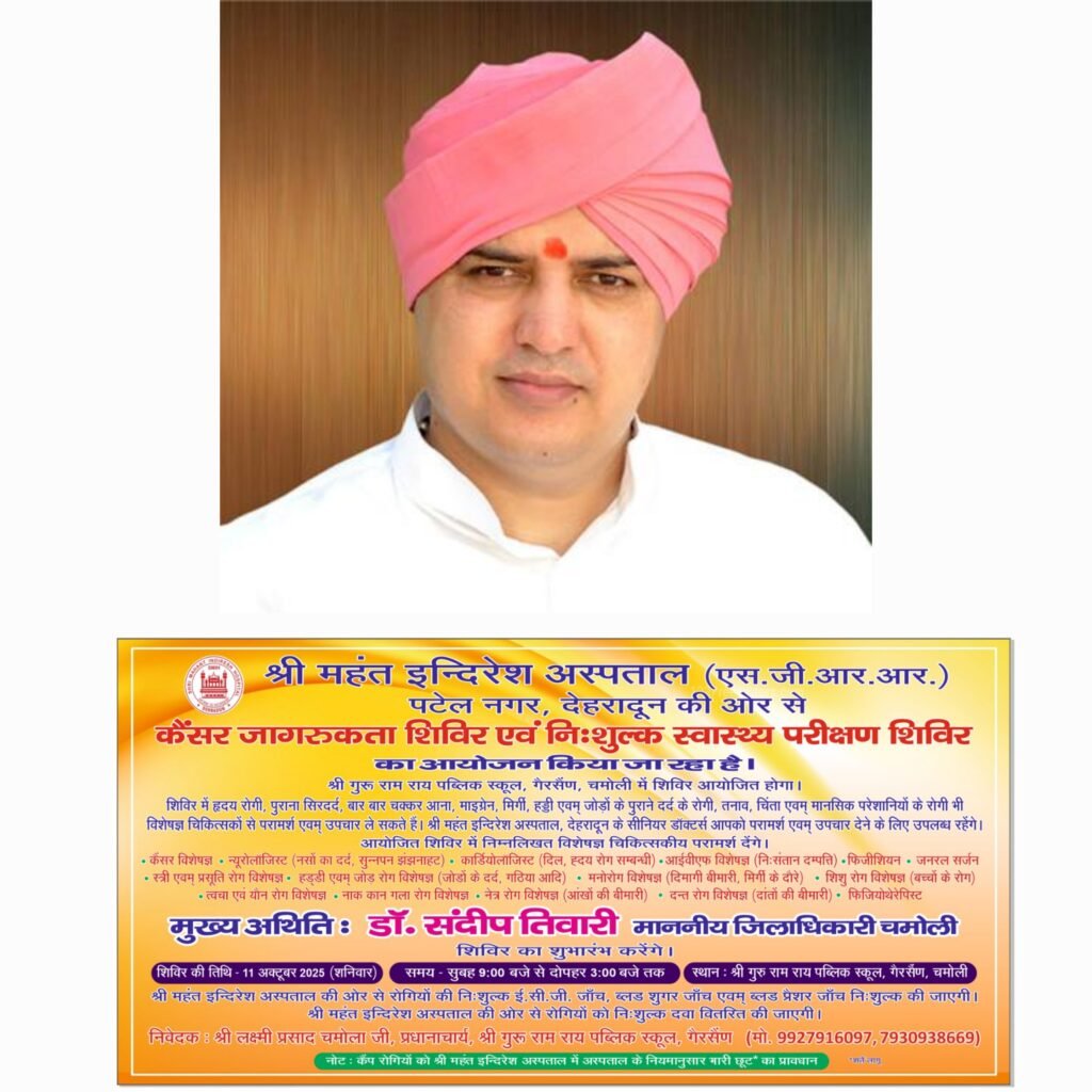 सेवा पथ पर महंत देवेंद्र दास महाराज जी का अगला कदम – गैरसैंण में पर्वतीय जनता को मिलेगी निःशुल्क चिकित्सा सेवा ...